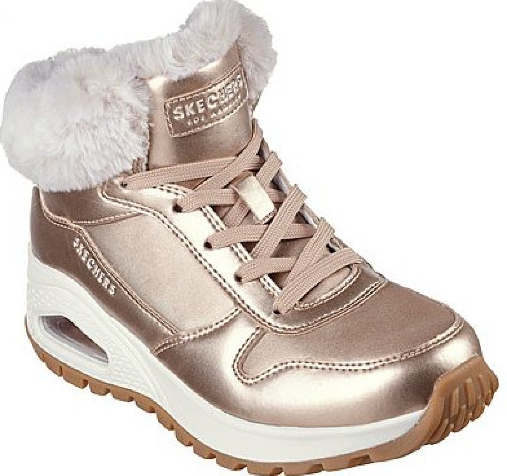 Dámská obuv značky Skechers. Kotníkové boty mají hřejivý vnitřek z umělé kožešiny a jsou tedy vhodné do chladného počasí. Vyšší kotníkový střih Vás ochrání před chladem a větrem a zároveň poskytne stabilitu při chůzi. Zimní boty pro dámy mají odolný svršek s lesklým vzhledem. Zaručení potěší dámy, které preferují glamour styl. Umělá kožíšek kolem kotníku působí velmi trendy. Boty Skechers se vážou na klasické šňůrky. Jsou pohodlné díky příjemné stélce Air Cooled Memory Foam®, která z aručí pohodlný došlap. Snižuje se únavu nohou i po celodenním chození. Gumová členitá podrážka Skech-Air® zajistí dobrou přilnavost a stabilitu i na mokrém povrchu. Dámské boty s kožíškem oživí Váš outfit a dodají mu eleganci. Boty na zimu se hodí pro každodenní nošení do města, do práce či ve volném čase. Detaily produktu: zimní kotníkové boty odolný svršek s leskem umělý kožíšek kolem kotníku vázání na šňůrky pohodlný a hřejivý vnitřek pohodlná stélka Air Cooled Memory Foam® gumová podrážka Skech-Air® dobře přilne