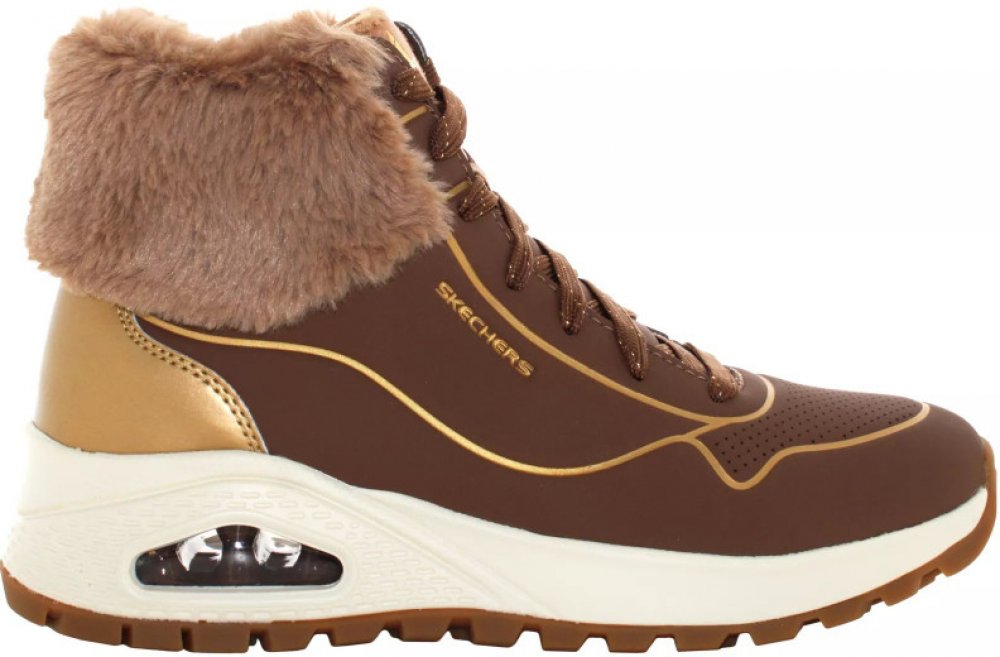 Tyto zimní boty Skechers Uno Rugged kombinují trendy chunky styl s pohodlím, které čekáš od Skechers. Robustní podrážka zvládne i náročnější povrch a Air-Cooled Memory Foam se postará o měkký došlap celý den.