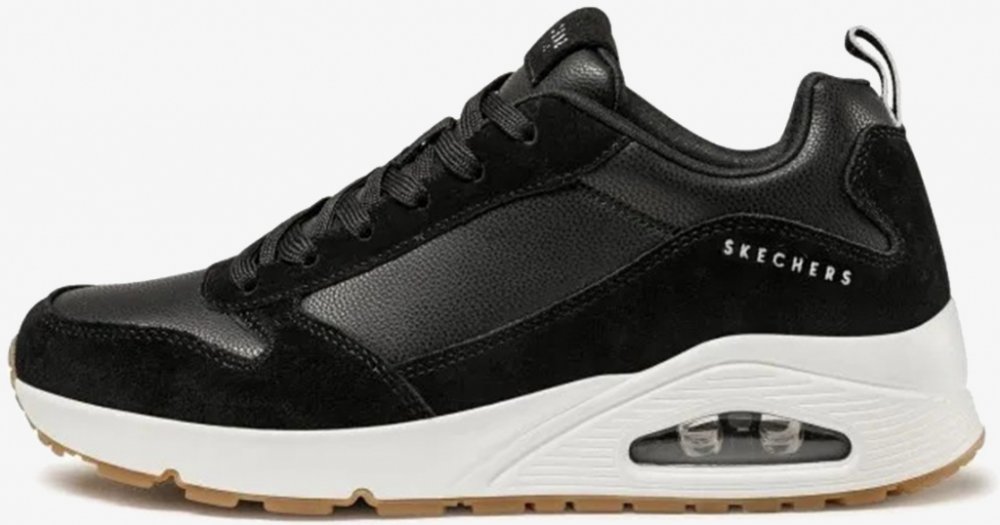 Skechers volnočasové semiš jarní/letní/podzimní nízká výrazně tlumené bez ochrany volnočasové černá na tkaničky městské hladké