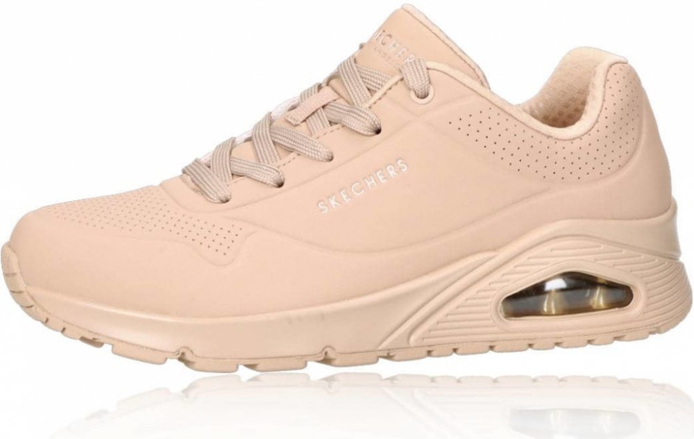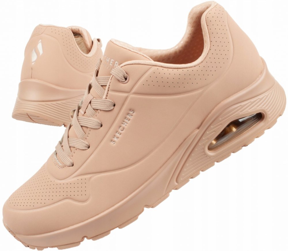Polstrovaná stélka vyrobená z Air Cooled Memory Foam paměťové pěny. Svršek ze syntetické kůže s prošíváním a perforací. Mezipodešev s viditelným tlumením Skech-Air a polstrováním paty absorbující nárazy.