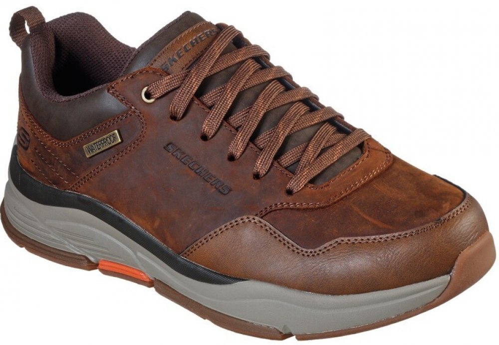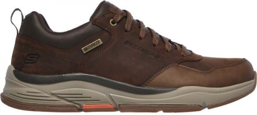 Skechers volnočasové kůže podzimní nízká se středním tlumením nepromokavé volnočasové hnědá na tkaničky městské hladké