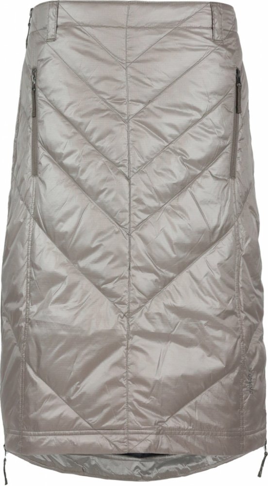 Zimní péřová sukně pod kolena SKHOOP v elegantním béžovém provedení... Také patříte mezi ženy, které se celou zimu klepou, protože mrznou prostě v každém oblečení? Zkuste si přes kalhoty obléci tuhle parádní, pod kolena dlouhou sukni zateplenou kachním peřím. Věříme, že se rychle stane oblíbenou součástí vašeho šatníku. Dokonale hřeje a udržuje tak zadeček, stehna i bedra v teple i za těch největších mrazů. Je větruodolná a díky DRW úpravě vydrží i menší deštík. KonstrukceSukně má na pravém boku celorozepínací dvoucestný zip, který usnadňuje oblékání. Už žádné přetahování přes hlavu ani složité soukání se do sukně spodem. Snadno ji nasadíte i na lyžařské kalhoty.Díky kratšímu zipu na druhé straně si můžete sukni uvolnit kolem nohou a užít si tak více volného pohybu třeba při sportu.Drobnosti můžete schovat do dvou zipem uzavíratelných kapes.V pase se nachází poutka pro případné uchycení pásku, v zadní části je sukně stažena do elastické gumy. Díky tomu neodstává a vám nebude foukat na záda.Má délku pod kolena, takže ochrání ty partie těla, které nám nejvíce promrzají. Je vhodná do města, na hory i na sport.My těmto péřovým sukním říkáme "inteligentní bundy na zadek a nohy". :-) Doporučujeme!SloženíVrchní materiál: 100% Polyester s DWR impregnacíZateplení: 80% prachové kachní peří, 20% peří, 500 fillpower, RDS CertifiedÚdržbaPrát v pračce na 40°, nebělit, žehlit na nízkou teplotu, nečistit chemicky, sušit v sušičce na nízkou teplotu. Obsahuje netkané části živočišného původu.