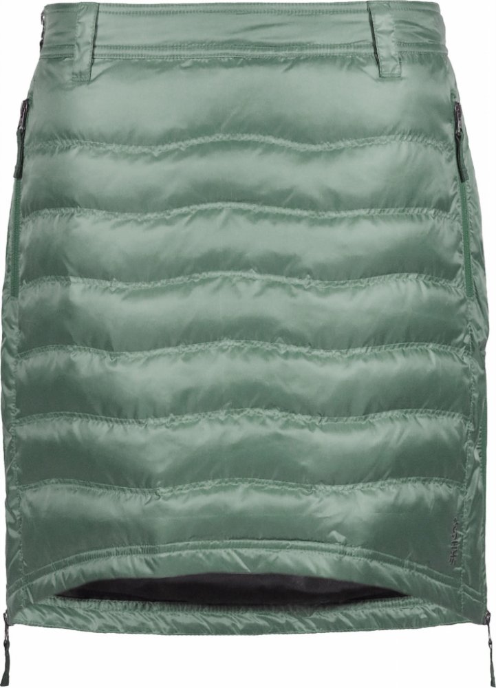 Sukně má na pravé straně dvoucestný zip, díky kterému můžete sukni rozepnout po celé její délce a snadno nasadit na vaše oblíbené lyžařské kalhoty. Na levé straně se pak nachází kratší zip, který umožní vytvoření vhodného rozparku. který oceníte například na běžkách či skialpech. V pase se nachází poutka pro případné uchycení pásku a v zadní části je sukně stažena do elastického gumy, která zajistí, že sukně nebude odstávat a nebude vám foukat na záda. Po stranách jsou samozřejmostí kapsy, které jsou opatřeny zipem.