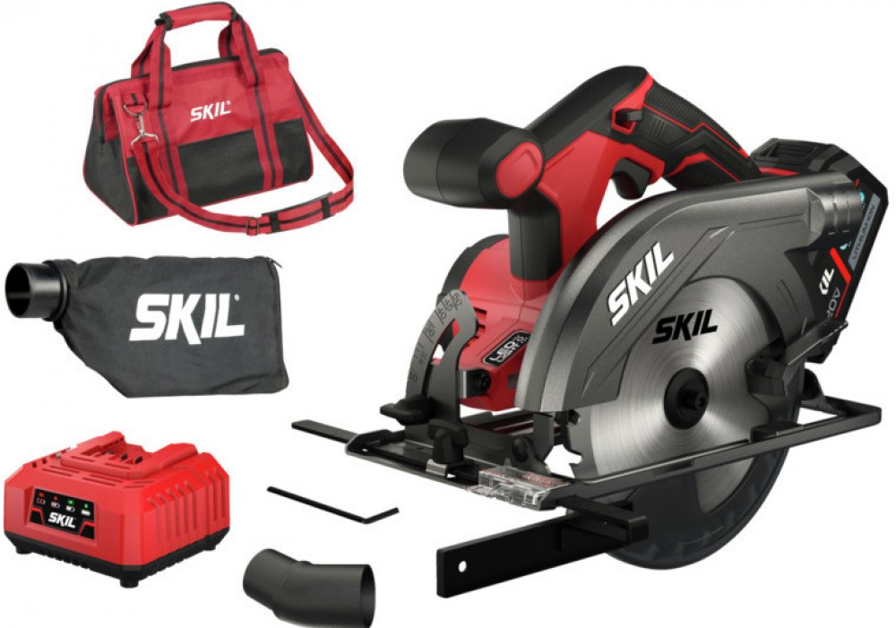 Akumulátorová okružní pila SKIL 3520. Akumulátor Li-Ion „20V Max“ (18 V) 2,0 Ah „Keep Cool™“ (1×). Nabíječka „20V Max“ (18 V) (3122 AA). Pilový kotouč s břitovými destičkami z tvrdokovu (24 zubů, Ø 165 mm, dřevo). Boční doraz. Prachový sáček. Adaptér pro vysavač. Šestihranný klíč. Návod k použití. Brašna.