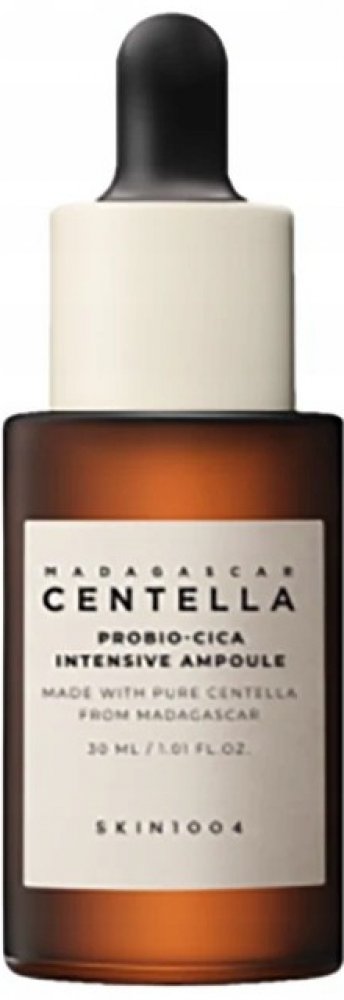 Madagascar Centella Probio-CICA Intensive Ampoule – vysoce koncentrované sérum pro suchou, citlivou a podrážděnou pokožku. Obsahuje patentovaný komplex probio-CICA (tj. kombinaci fermentovaného extraktu z pupečníku asijského a probiotik), který hydratuje, regeneruje a posiluje ochrannou kožní bariéru. Probiotikum Lactobacillus působí antibakteriálně a snižuje záněty. Přídavek ceramidu NP a kyseliny hyaluronové pomáhá obnovit zdravou a jemnou pokožku.