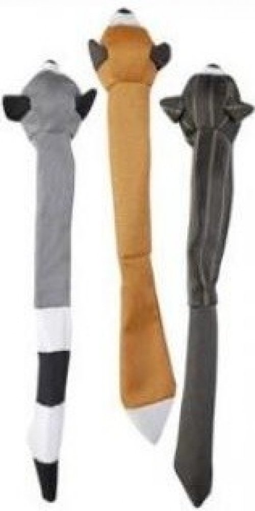 to jsou vynikající hračky pro psy. Jsou zdravotně nezávadné, nejsou plněné vatou nebo jiným materiálem. Nehrozí proto rozkousání, roztrhání nebo roztahání zbytků po bytě! Zábavné zvířátko "kožešinka" je určeno na hraní a přetahování. Už vás nebaví hledat zbytky psích hraček po celém domě a zahradě? Skinneeez zvířecí přátelé jsou tím správným řešením. Hračka je plochá, lze ji snadno uchopit, držet a hrát si, je určena pro téměř libovolnou velikost psa. Skinneeez animals jsou hračky, které probudí ve vašem psovi jeho přirozené lovecké instinkty. Psi si s ní vydrží hrát hodiny. Můžete jim ji házet, tahat se o ni nebo pozvat vašeho pejska ke hře. Je výborná pro tahací hry u psů s "měkkou tlamou" a u malých štěňátek. Hračka nemá žádnou výplň. Je vyrobena ze super jemného hedvábného plyše. Všechny Skinneeez hračky obsahují dvě pískátka - jedno v hlavičce a druhé na konci ocásku. Jsou měkké a ohebné. Parametry:
