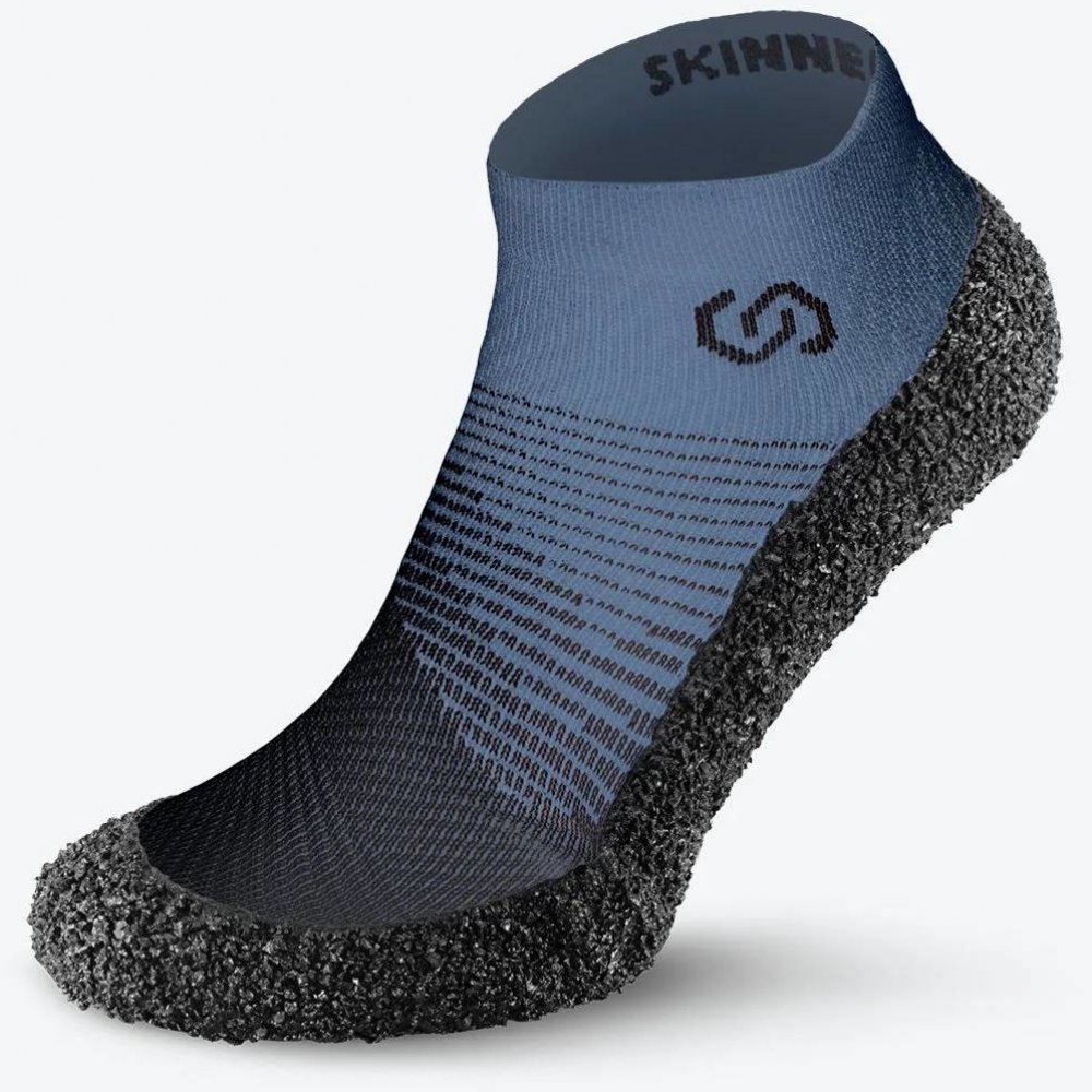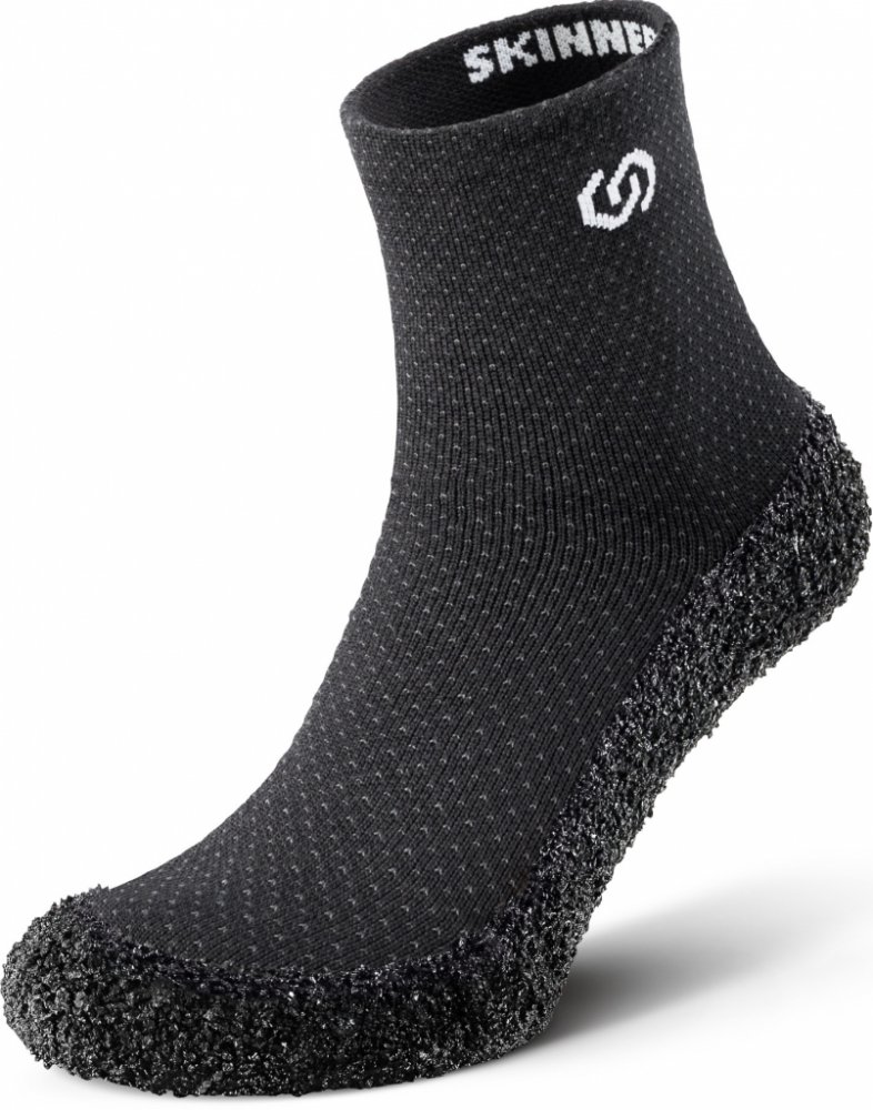 Abychom zajistili dlouhou výdrž po stovky kilometrů, flexibilitu a zároveň lehkost, Skinners vyvinuli a patentovali speciální technologii. Ta spojuje svobodu a pohodlí ponožek se základní ochranou obuvi do jednoho produktu. Odolný materiál ze švédských polymerů, technologie bez použití jakýchkoli lepidel a třívrstvý a pru...