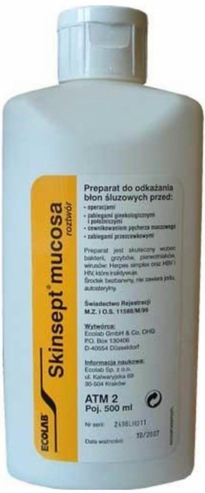 Skinsept Mucosa je biocidní přípravek. Není proto určena k léčebnému účelu. V souladu s návodem je určena k dezinfekci pokožky v okolí sliznic pohlavních orgánů, ale ne na sliznice a to ani na vnější sliznice pohlavních orgánů.