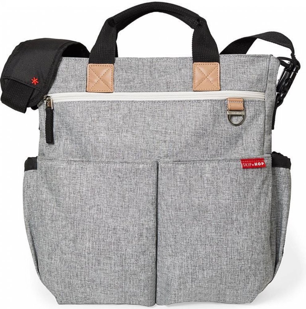 • Obsahuje patentované „Shuttle Clips“, díky nimž lze ramenní popruh odepnout/nebo nechat na tašce, dle Vašeho vkusu. Odepněte menší přezku, obtočte pás kolem rukojeti kočárku a zajistěte. Větší sponou se odepíná ramenní popruh.