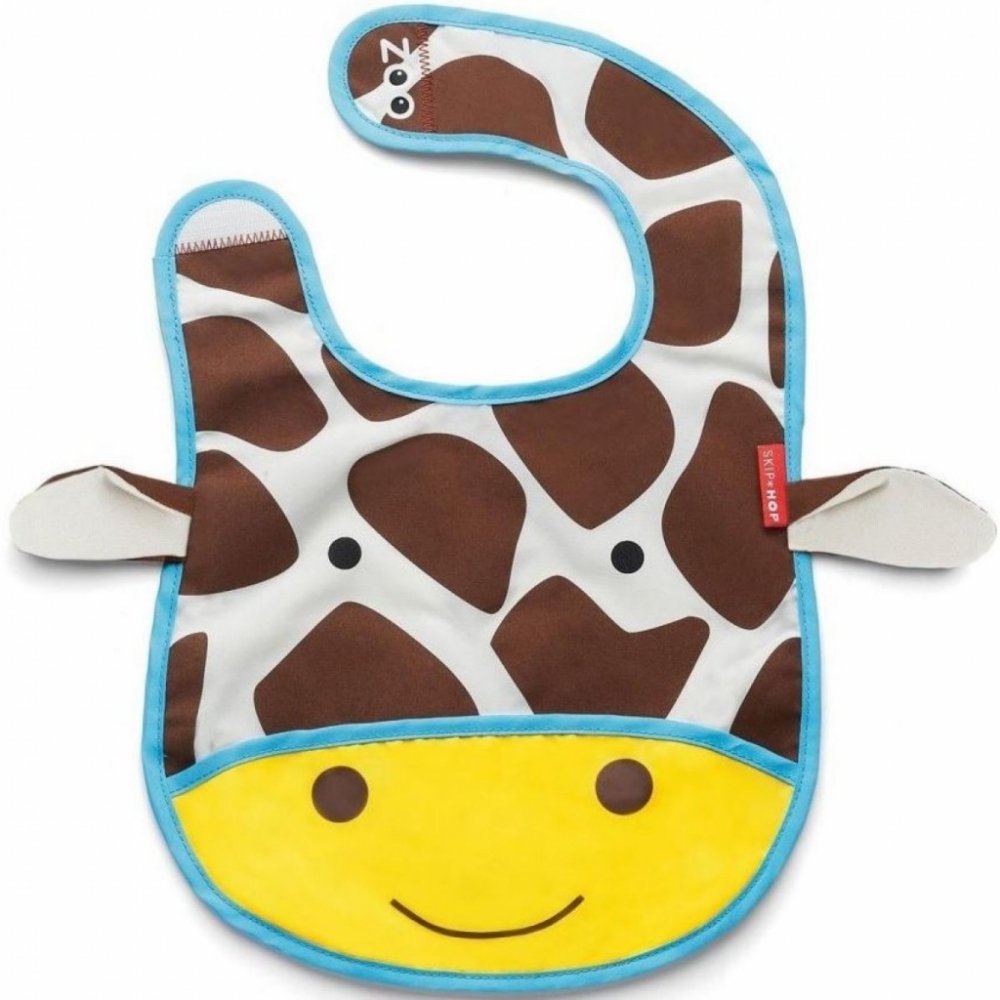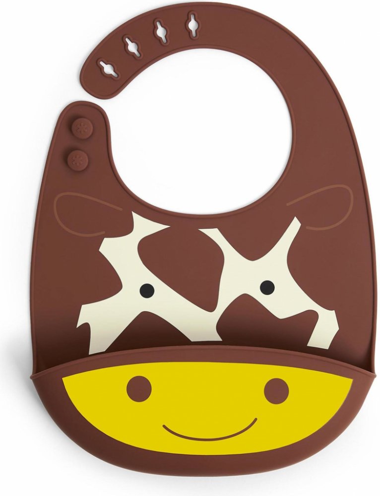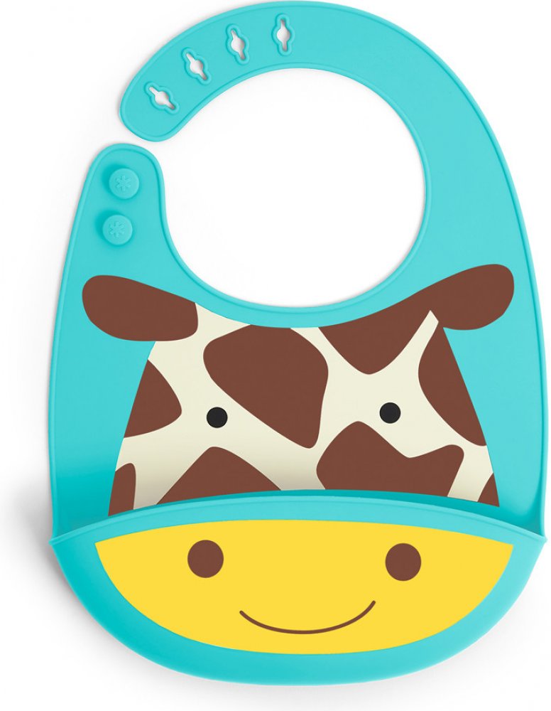 Silikonový bryndák Skip Hop z kolekce Zoo ve tvaru zvířátka. Bryndák zachytí padající jídlo od nezbedných jedlíků.
