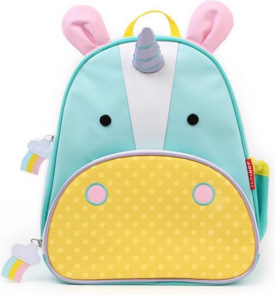 Krásný batůžek ve stylu SKIP HOP. Propracované detaily batůžku ladí s veselými motivy na zipu. Přední oddělená kapsa ideální na svačinku s extra kapsičkou na pastelky a pro další nezbytnosti na cesty. Prostorná postranní síťovaná kapsa na pití. Pohodlné nastavitelné polstrované ramenní popruhy. Ucho pro přenášení. Jednoduchá údržba.