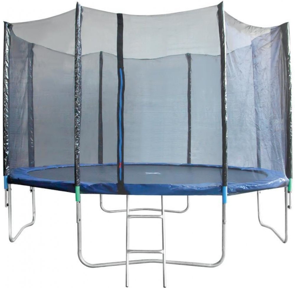 \nNení vhodná jako profesionální náčiní. Trampolína disponuje kvalitní polypropylenovou plochou pro skákání a pevnou, stabilní konstrukcí vyrobené z kalené oceli odolné vůči deformacím. Pěnová ochrana je použita na rámu trampolíny - na tyčích a na pružinách. Vnější síťka zabraňuje vypadnutí. Výhodou je žebřík, který umožňuje snadný vstup na trampolínu.