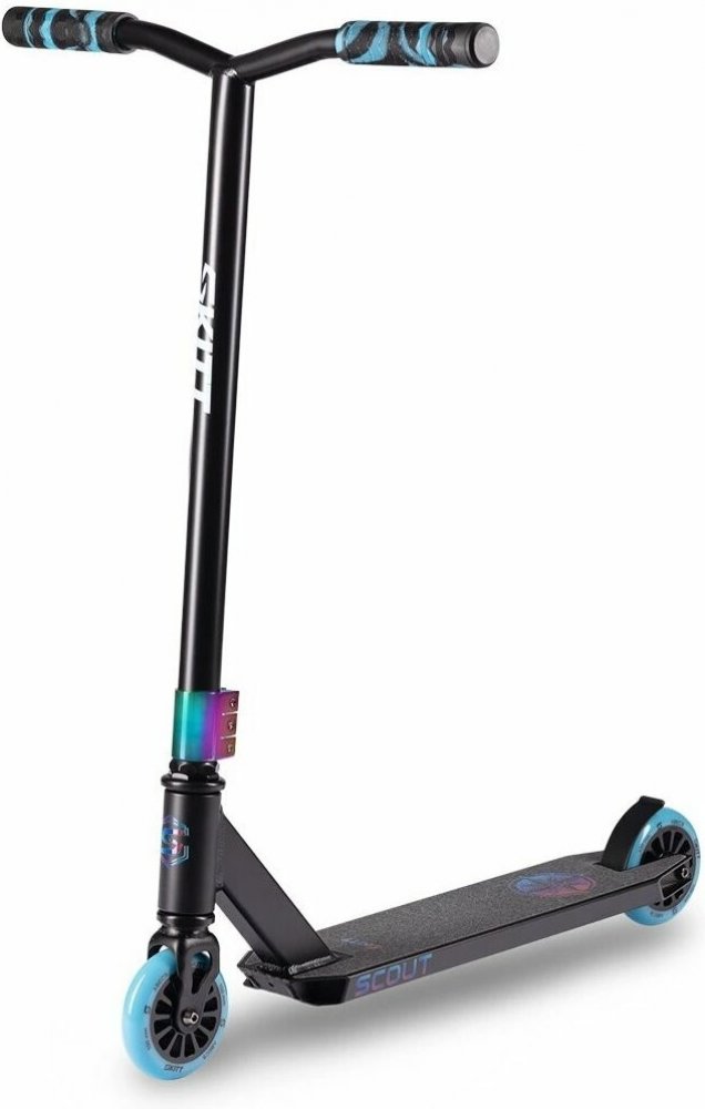 Srdcem setu je freestyle koloběžka SKITT SCOUT Black Rainbow, navržená speciálně pro nejmenší jezdce. Díky lehčí konstrukci se snadno ovládá a pomáhá rychle získat stabilitu při prvních tricích. Odolná deska zvládne běžné dopady, pevná ocelová řídítka dávají jistotu při řízení a 360° systém umožňuje postupně trénovat barspiny a další freestyle otočky. O plynulou jízdu se starají 100 mm kolečka s kvalitními ložisky ABEC-9, která zajišťují svižný rozjezd i dobrou kontrolu. A styl? Ten je nepřehlédnutelný. Kombinace černého provedení s rainbow detaily dává koloběžce moderní vzhled, který v parku rozhodně zaujme.