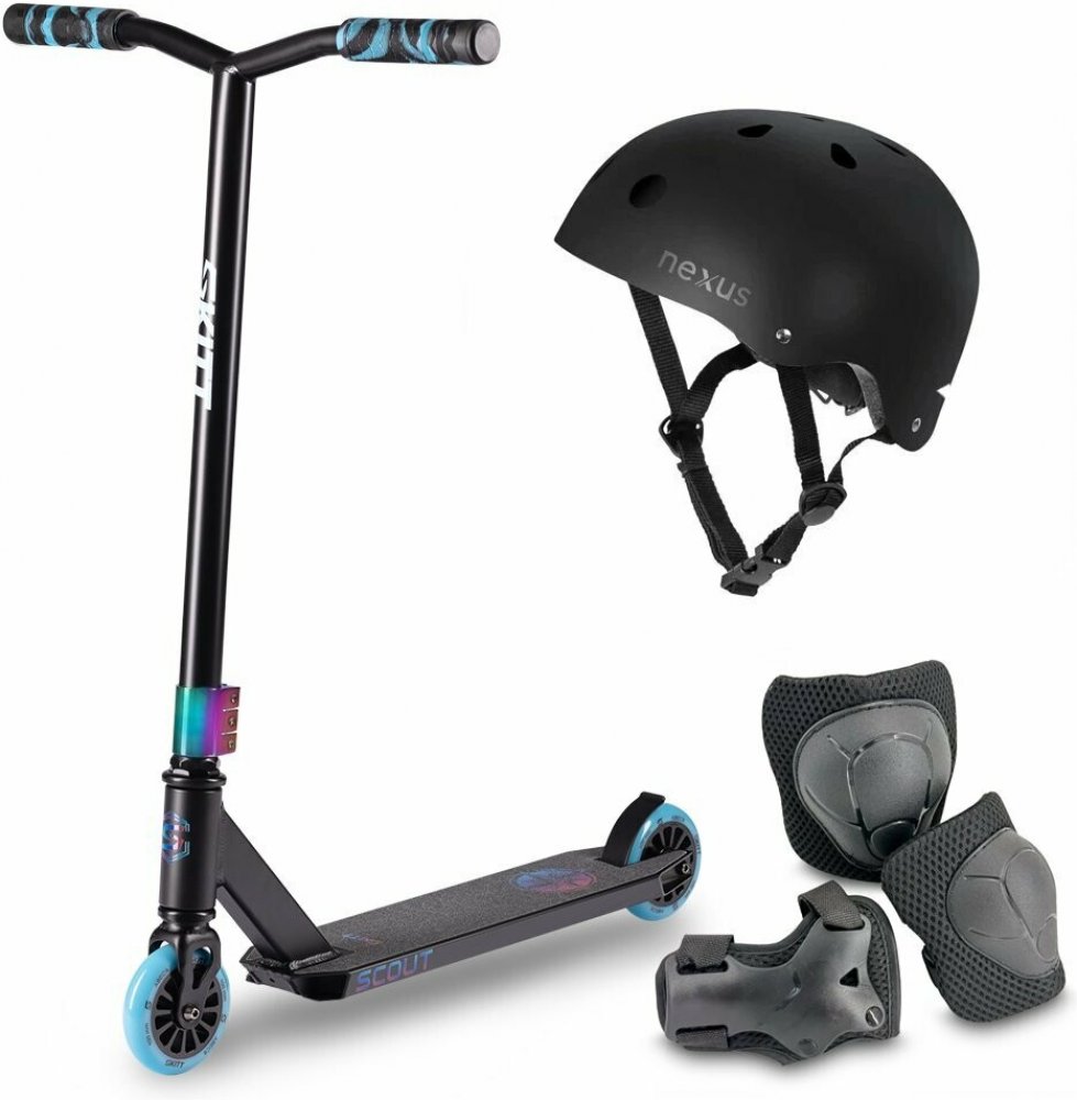 Pro děti od 105 cm výšky, které chtějí začít s freestyle koloběžkou bezpečně a s jistotou. Ideální pro úplné začátečníky do skateparku i na první street ježdění. Skvělá volba jako první freestyle výbava, která spojuje lehkou ovladatelnou koloběžku, ochranu hlavy a kompletní sadu chráničů.