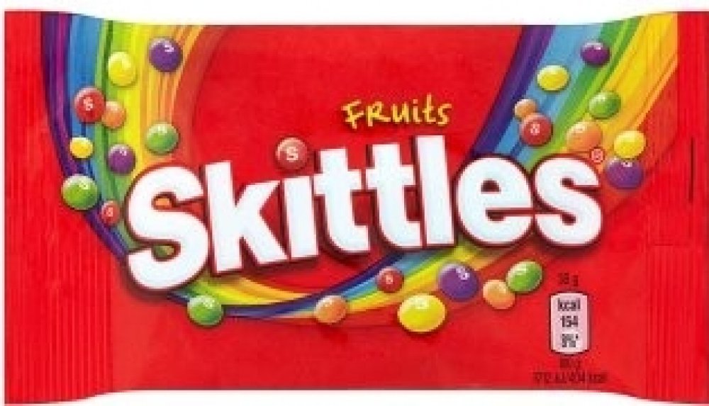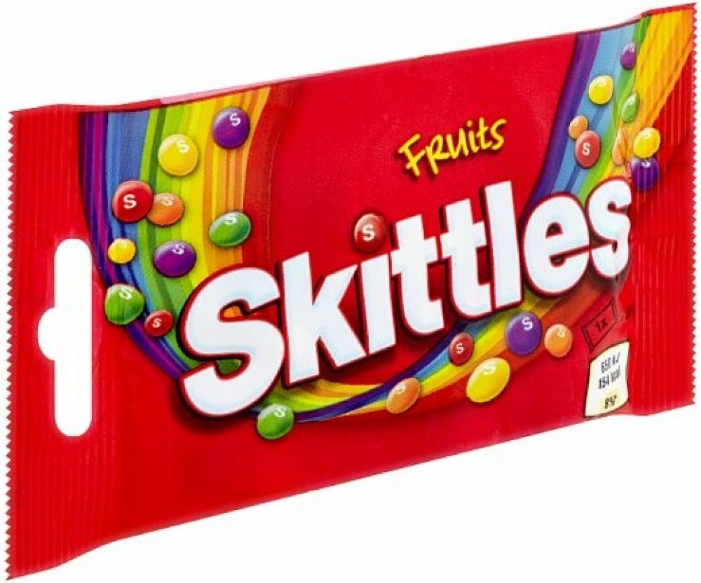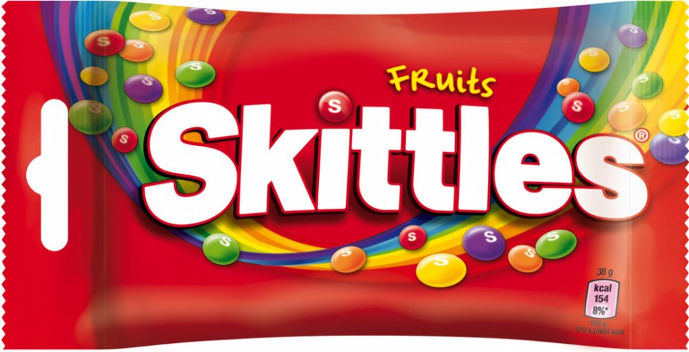 Každý bonbon Skittles má měkký žvýkací střed obalený křupavou...