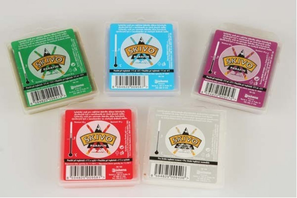 Pro zajištění dobré trvanlivosti voskování doporučujeme parafínové vosky do skluznice zažehlit. Vosk aplikujte na vyčištěnou skluznici, zbavenou zbytků vosků a nečistot. Žehličku nahřejte na teplotu 120 - 140°C. Vosk přiložte k žehličce a nechte nahřát. Poté změklý vosk rychle přiložte ke skluznici a rozetřete. Opakujte postup po celé délce skluznice tak, abyste vytvořili dostatečně silnou vrstvu vosku (tím zamezíte přímému kontaktu žehličky se skluznicí). Nyní vosk zažehlete do skluznice, vždy dodržujte směr žehlení od špičky k patě. Vosk by měl pouze tát, jeden tah by měl trvat asi 20 sekund. Lyže nechte vychladnout na pokojovou teplotu. Během této doby „natáhne“ skluznice potřebný vosk do pórů. Přebytečný vosk stáhněte pomocí škrabky Skivo plexi škrabka. Na závěr skluznici překartáčujte měkkým lešticím kartáčem a přeleštěte utěrkou Skivo.