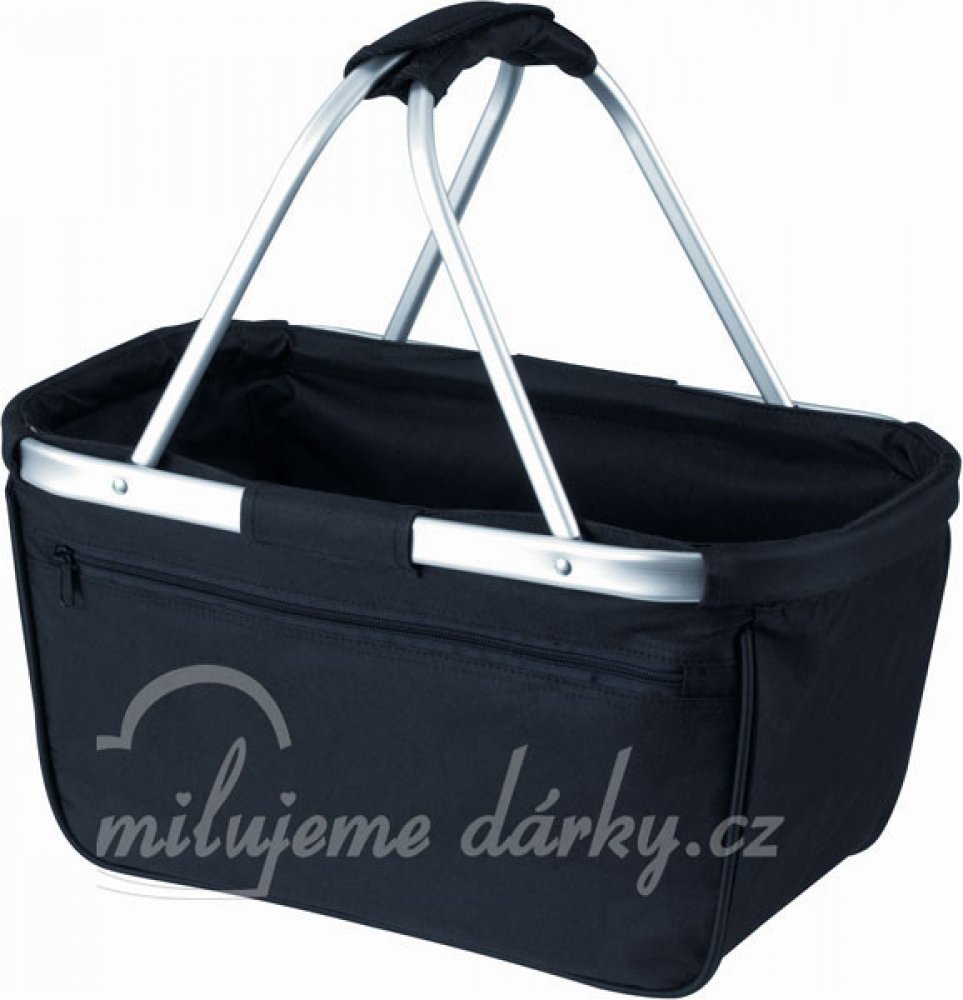 Skládací nákupní košík, s hliníkovým rámem, 600D polyester. Doporučená technologie tisku: sítotisk S2. Maximální velikost tisku: 100 × 100 mm. Rozměry: 25 × 25 × 45 cm. Kartonové množství: 10