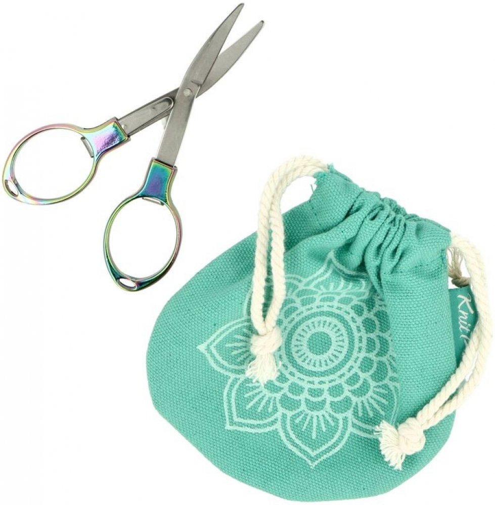 Elegantní nůžky s lesklým barevným povrchem se sklápějí, aby byly chráněny před hroty. Když jste připraveni nůžky použít, stačí jen od sebe odtrhnout rukojeti a nůžky vysunout! Mají ideální velikost a lze je bezpečně nosit na cesty nebo uložit do tašky. Délka nůžek je 9,6 cm. Součástí balení je také praktické tealové úložné pouzdro se stahovací šňůrkou s květinovým motivem.