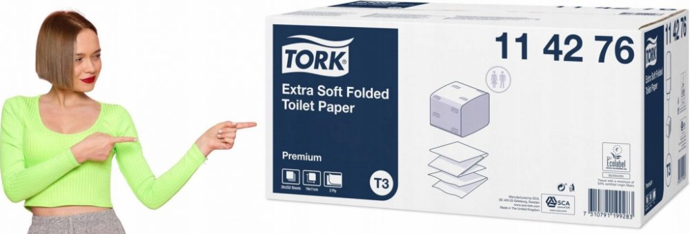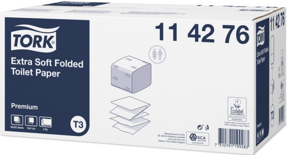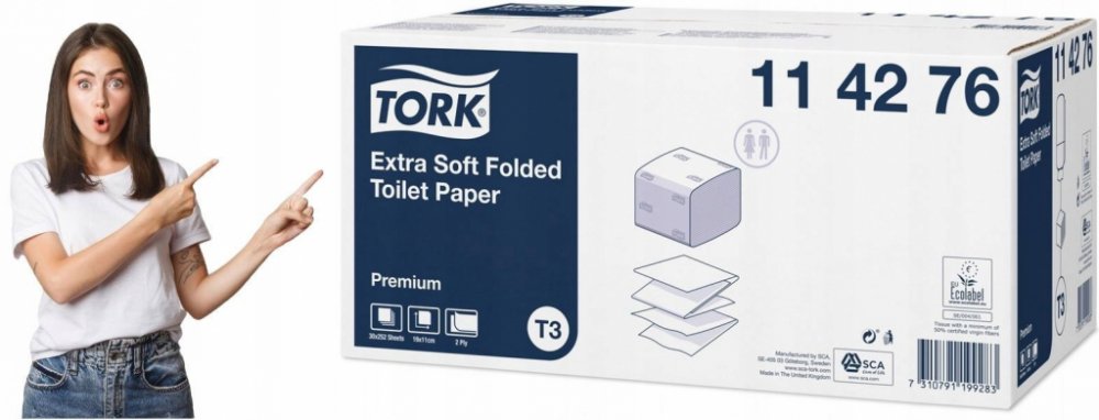 Toaletní papír Tork - skládaný, 2 vrstvy. Vhodný pro méně