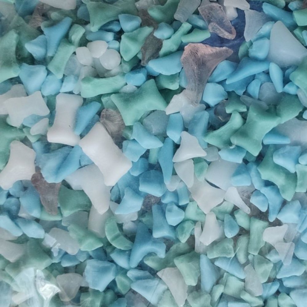 Sklěná drť vzniká při výrobě skleněných korálků, jako odpadní produkt. Budeme rádi, když najde ještě využití.
