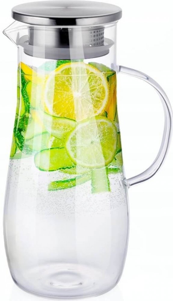 Sklena karafa s držadlem, která pojme 1,4 litru, je ideální na letní přípravu ledových nápojů, ale také čaje.