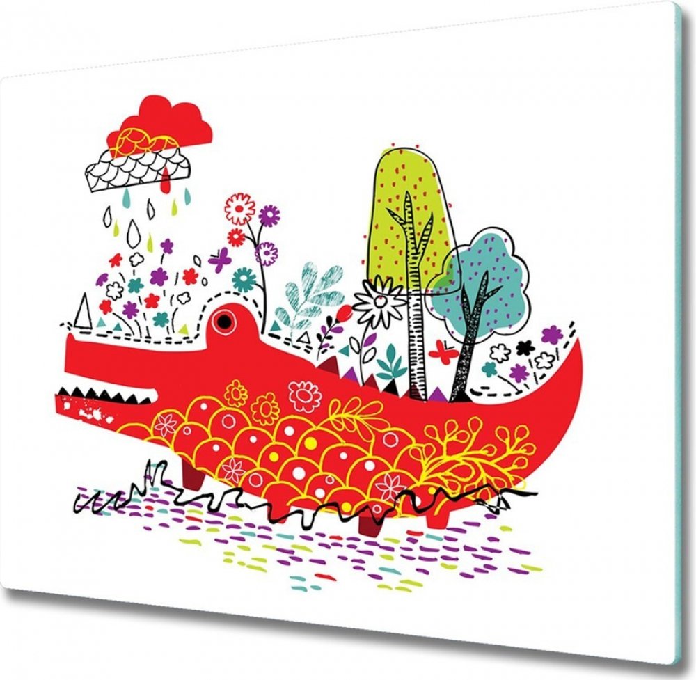 Sklenena krajeci deska Barevný krokodýl 60x52 cm