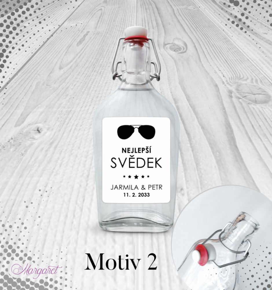 Krásný dárek pro svědka. S vašimi jmény, datem svatby a nápisem “Nejlepší svědek”.