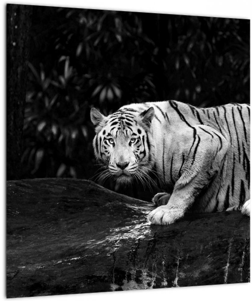 Skleněný obraz - Tygr albín, černobílý, jednodílný 40x40 cm na skle