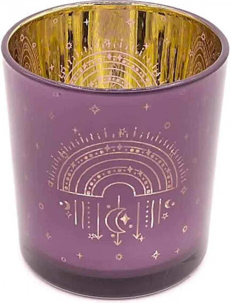 Tento svícen z fialkově zbarveného skla je určen pro čajové i votivní svíčky. Na jeho povrchu se v jednoduchém, ale silném symbolu duhy snoubí lehkost, radost a klid. Lila odstín působí jemně, světlo přes něj krásně prosvítá a vytváří hřejivou atmosféru.