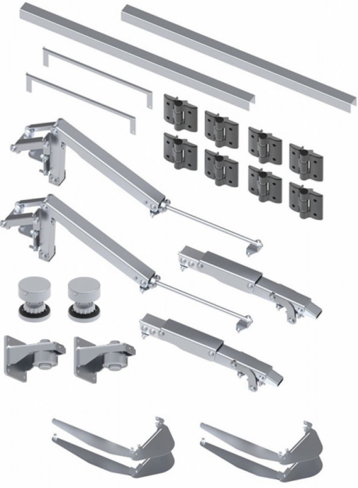 Komponenty této sestavy jsou profesionálně zpracované a zajišťují maximální pevnost a rychlost pohybu brány. Mechanismus je do detailu propracovaný a jeho montáž lze provést bez svařování.