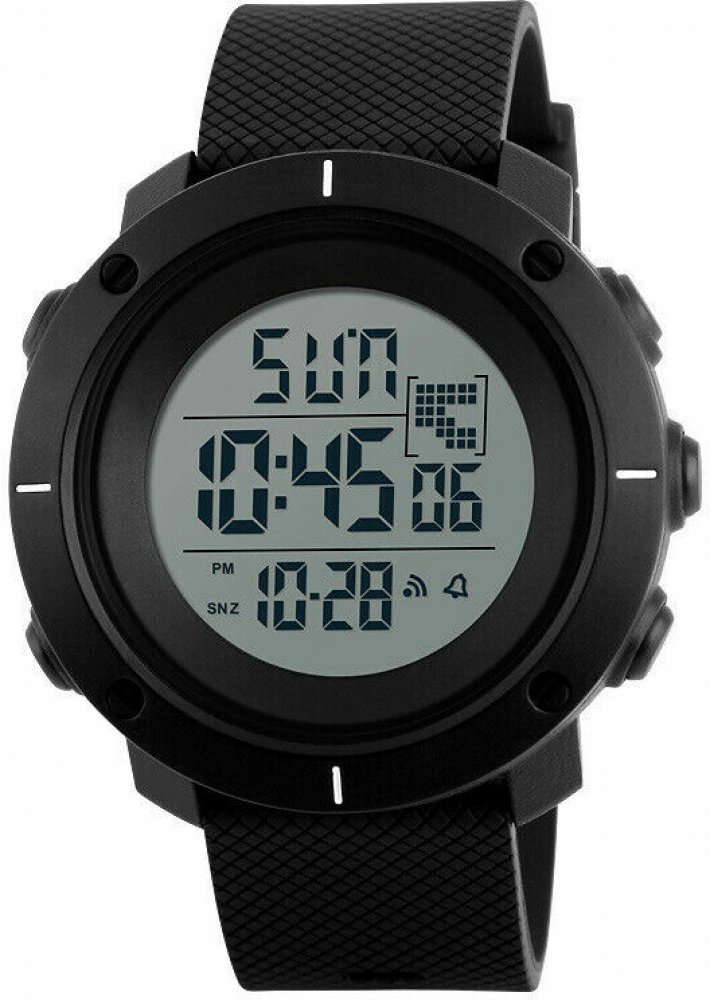Skmei digitální polyuretan sportovní pánské pro běžné použití (30–50 m) 52.0 mm polykarbon 50.0 m bez osazení kulaté černá šedá s LED diodou trnová spona 2.2 cm na ruku s arabskými číslicemi černá 5.2 cm velké 14.0 mm 14 mm s dočasným svícením (luminiscence/LED) bez chytrých funkcí