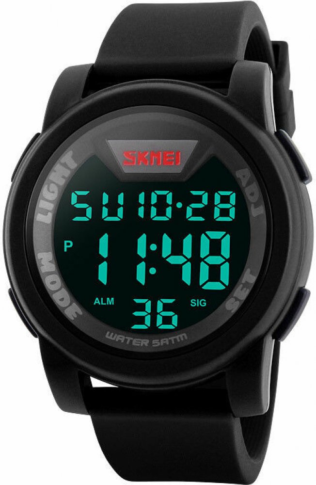 Skmei digitální polyuretan sportovní pánské bateriové - quartz vhodné k plavání (50–100 m) 50.0 mm pryskyřice 50.0 m bateriové 250.0 g pryskyřičné kulaté zelená černá s luminiscencí na přezku 2.2 cm na ruku černá 5.0 cm velké 22.0 mm 15 mm s dočasným svícením (luminiscence/LED) s nenáročnou údržbou (quartz) bez chytrých funkcí