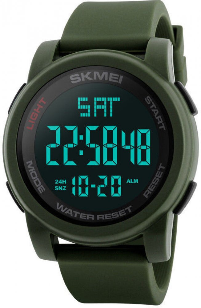 Skmei digitální plast plast 50 m bateriové 63 g akrylátové sportovní pánské 23 cm kulaté zelená zelená 2 cm