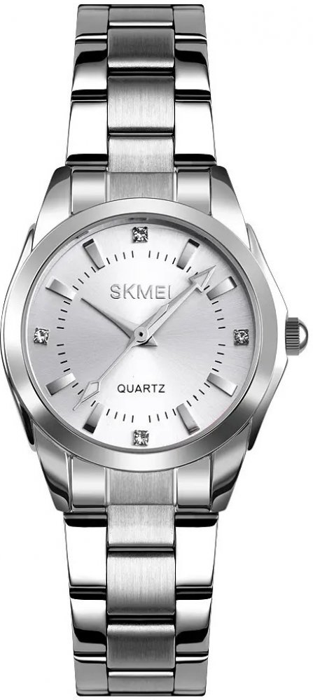 Skmei analogové ocel 30.0 m bateriové 63.0 g minerální elegantní dámské 20 cm bateriové - quartz krystaly kulaté stříbrná stříbrná sklapovací přezka 1.4 cm pro běžné použití (30–50 m) s nenáročnou údržbou (quartz) na ruku bez číslic stříbrná ocel 3.0 cm malé 14.0 mm 9.0 mm 30.0 mm