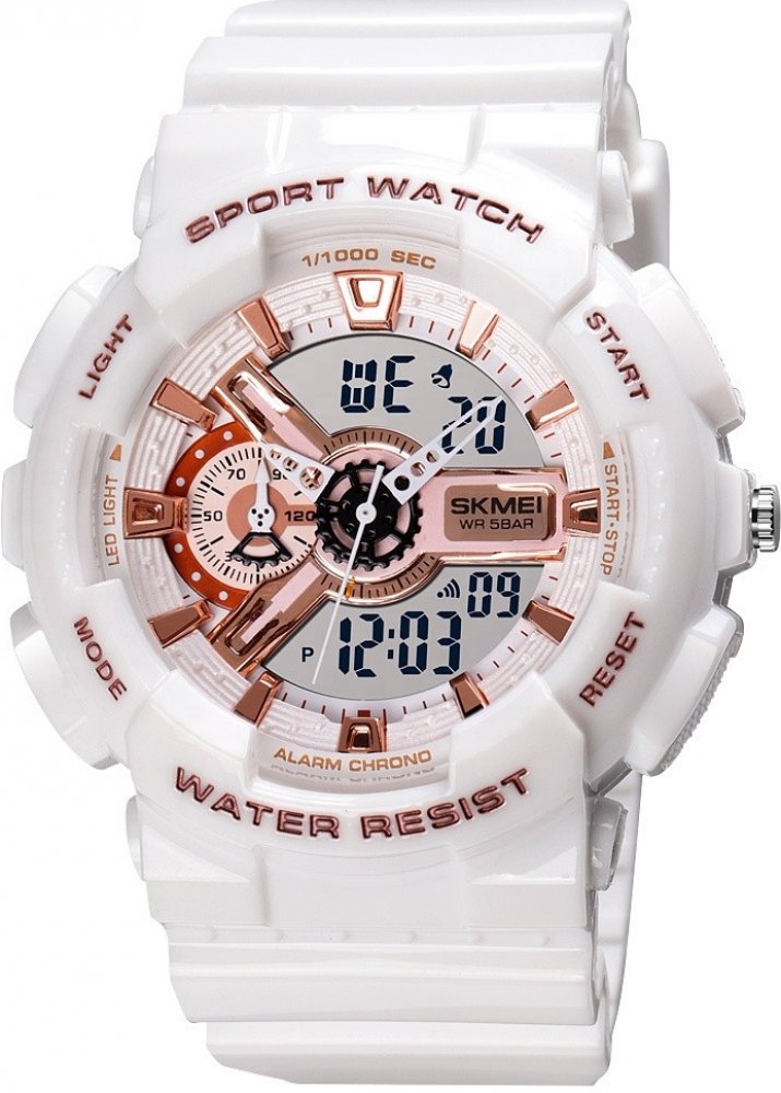 Skmei analogové plast plast bateriové 62 g křišťálové bílá 2.1 cm s LED diodou