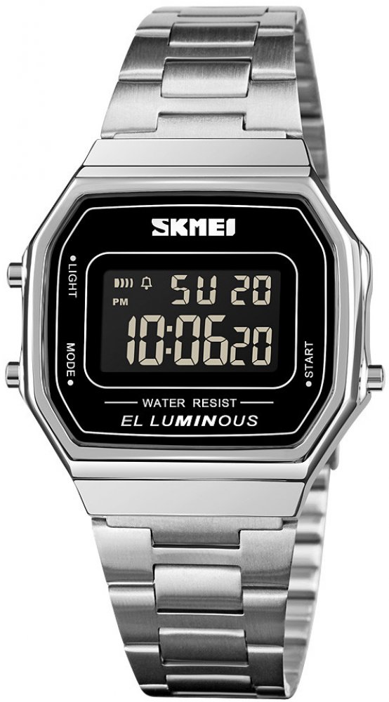 Skmei digitální ocel vintage pánské bateriové - quartz pro běžné použití (30–50 m) 35.0 mm kov 50.0 m 63.0 g minerální 23.0 cm osmihranné stříbrná černá s LED diodou 1.5 cm na ruku stříbrná ocel 3.5 cm malé 11.0 mm s dočasným svícením (luminiscence/LED)