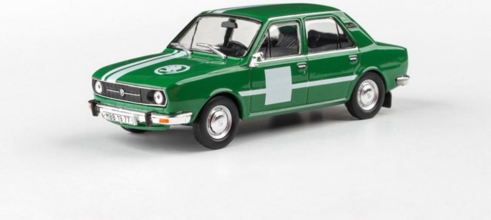 Populární Škoda 105 L s kulatými předními světly, lidově nazývaná „užovka“, jedná se o poslední škodovku s motorem umístěným v zadní části vozidla a s náhonem zadních kol.