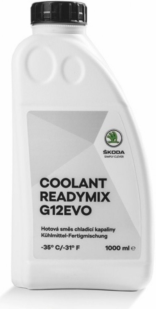 Hotová směs chladicí kapaliny G12evo pro všechny vozy ŠKODA se dodává již namíchána ve správném poměru, takže je připravena k okamžitému použití. Je vhodná jako náplň po celou dobu životnosti vozidla a mezi její výhody patří i to, že jí lze volně mísit s kapalinami G12 plus plus a G13.