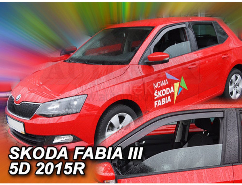 Ofuky oken Škoda Fabia III 2013- přední sada 2ks.Praktický a estetický doplněk automobilu. Ofuky - protiprůvanové plexi umožní ve vozidle přirozenou cirkulaci vzduchu, během deště a mlhy tak předejdete zamlžování oken. Ofuky oken usměrňují proudění vzduchu při otevřeném okně a tak snižují průvan a vznikající hluk. Okna mohou být pootevřena i za nepříznivého počasí jako je déšť a sníh.
