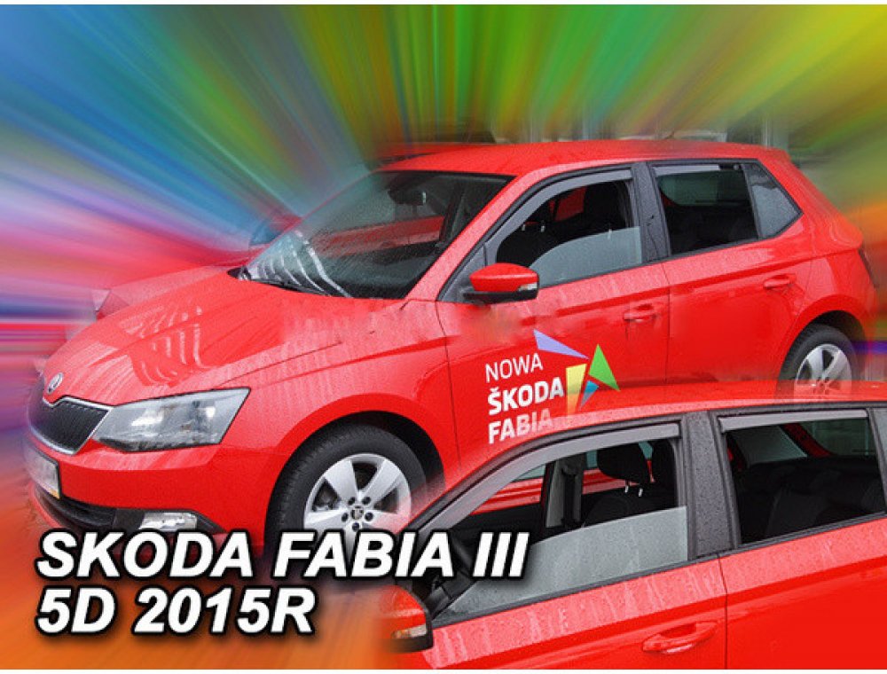 Ofuky oken Škoda Fabia III hatchback / combi 2014- přední + zadní sada 4ks.Praktický a estetický doplněk automobilu. Ofuky - protiprůvanové plexi umožní ve vozidle přirozenou cirkulaci vzduchu, během deště a mlhy tak předejdete zamlžování oken. Ofuky oken usměrňují proudění vzduchu při otevřeném okně a tak snižují průvan a vznikající hluk. Okna mohou být pootevřena i za nepříznivého počasí jako je...