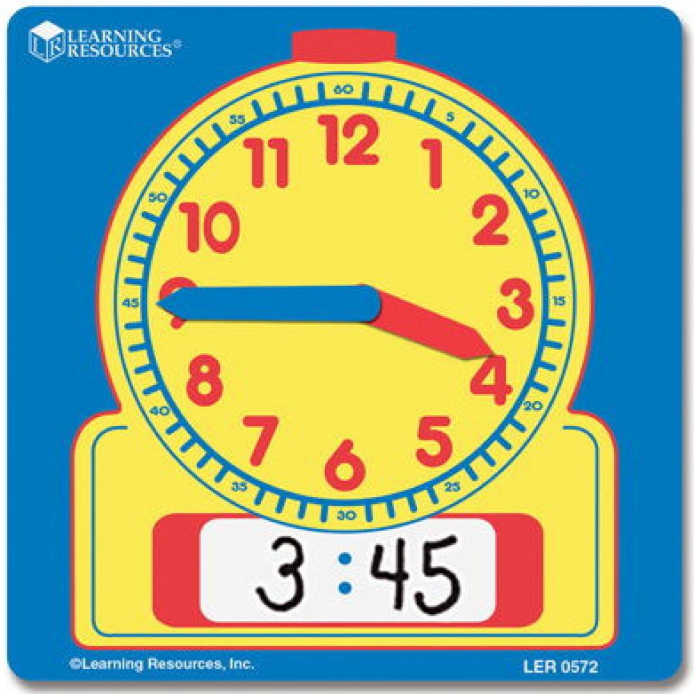 Popisovatelné školní hodiny představují skvělou pomůcku pro všechny malé studenty, kteří se učí poznávat hodiny a určovat čas. Deset laminovaných tabulek s hodinami obsahuje pohyblivé ručičky a místo pro psaní hodin v digitálním formátu.