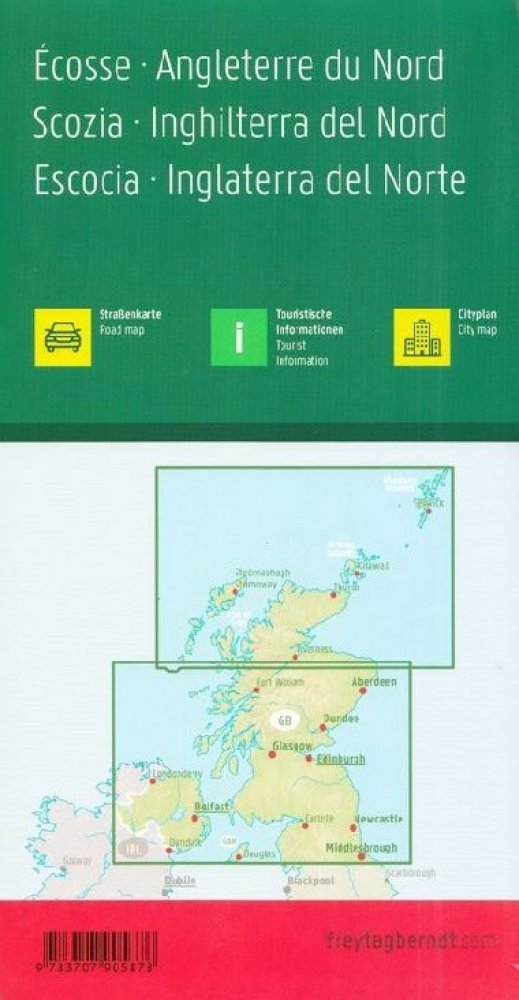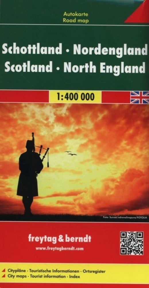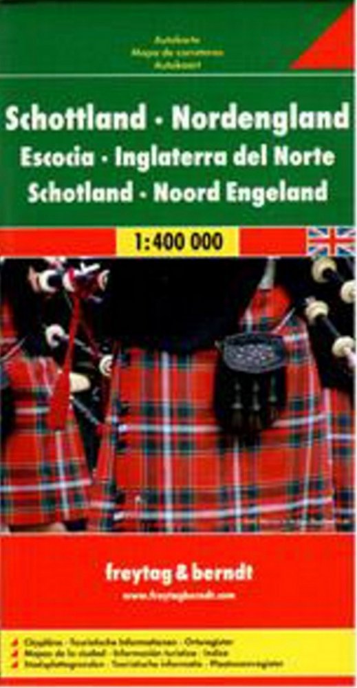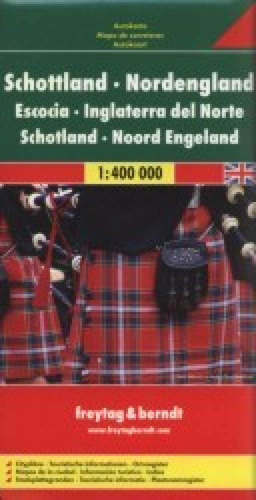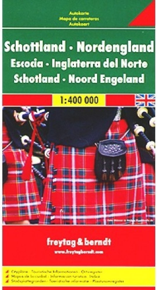 Oboustranná dobře čitelná automapa Skotska s turistickými informacemi (rozsah zobrazeného území zahrnuje i severní Anglii). Základem motoristické vrstvy je silniční síť s kilometráží, čísly silnic, zvýrazněny jsou hlavní dopravní tahy, benzínové stanice, placené úseky. Z turistického obsahu jsou zaznačeny přírodní a kulturní zajímavosti, úseky s panoramatickým výhledem, možnosti ubytování, sportov...