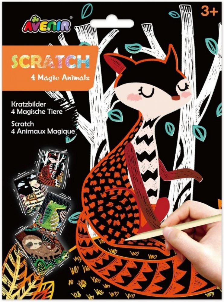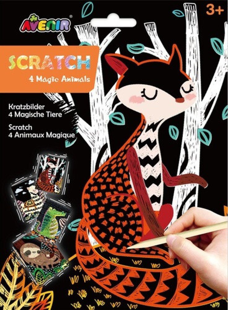 Věk. 3+ Druh sortimentu : Papírnictví, Název : Škrabací obrázky 4 ks Zvířátka, Jazyk : Čeština,