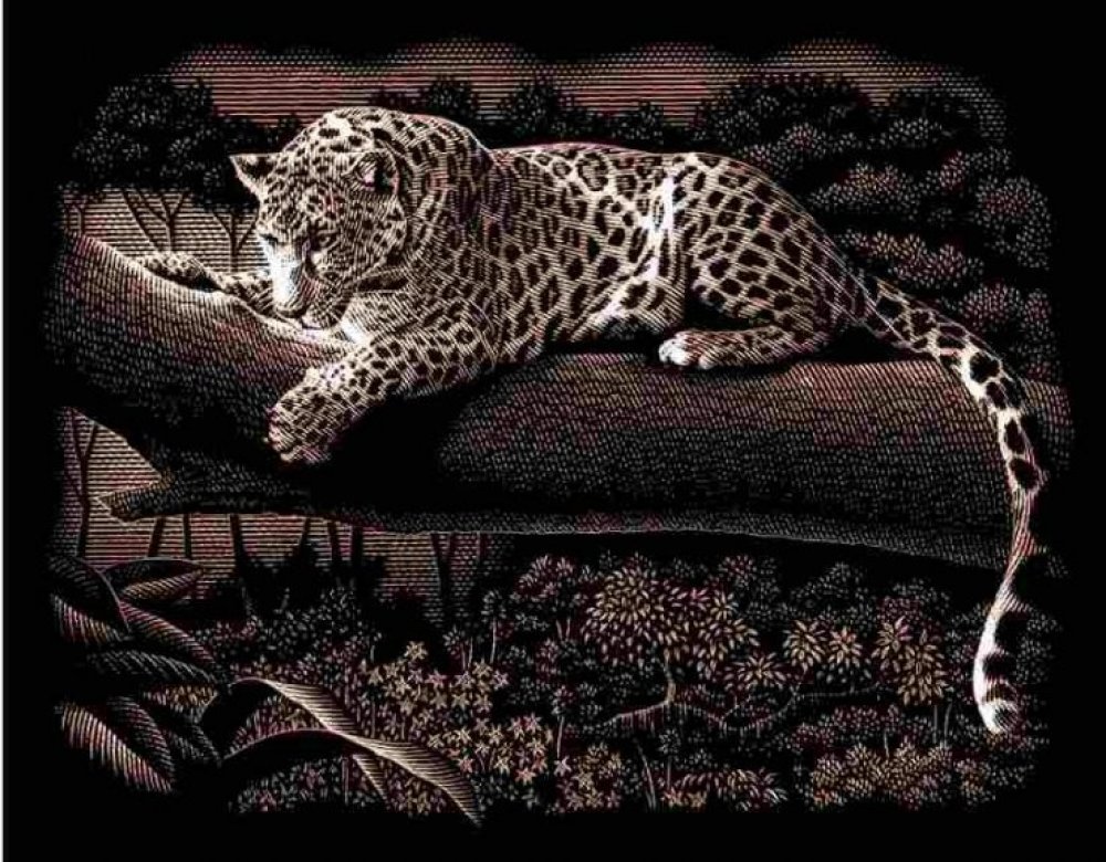 Vytvořte si krásný rytinový obrázek. Sada obsahuje obrázek natištěný na černém kartonu, škrabací pero a vzorek na vyzkoušení. Po seškrábání linek předtištěného obrázku se Vám objeví krásný rytinový obrázek, který se pěkně leskne z různých úhlů pohledu. Vhodné od 8 let.