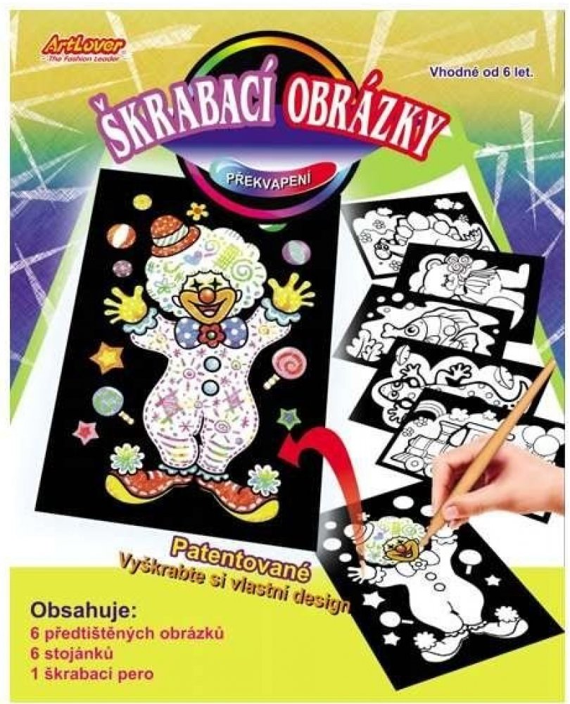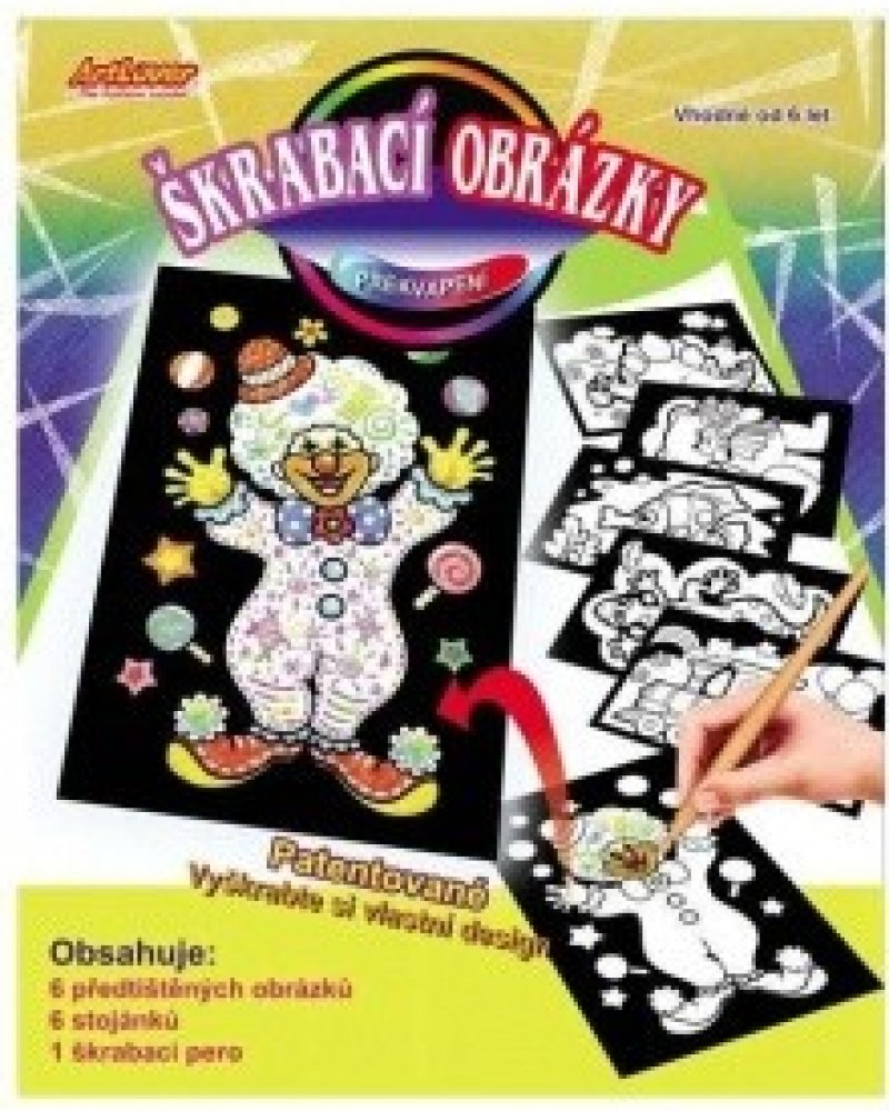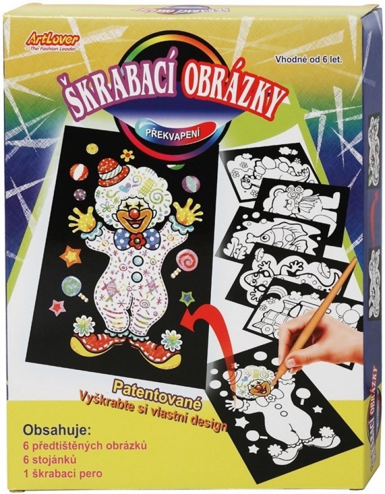 Vyškrabte si vlastní obrázek. 3 jednoduché kroky, přidejte pouze vlastní 1. Odstraňte ochrannou folii. 2. Přiloženým škrabákem vyškrabejte do obrázku Váš motiv. 3. A máte hotovo! Obsahuje: 6 předtištěných obrázků 6 stojánků 1 škrabací pero fantazii