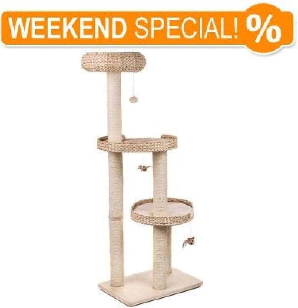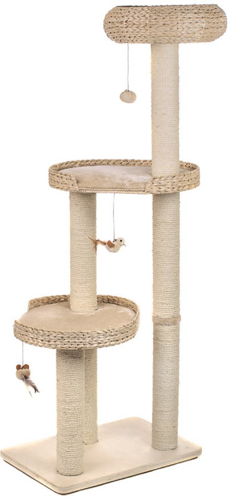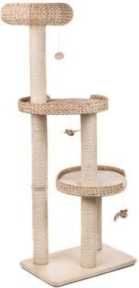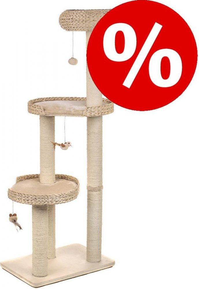 Kvalitní přírodní materiály a pěkný design jsou přednostmi stabilního škrábacího stromu Natural Home III. Pohodlná místa k ležení z teplého pletiva z vodního hyacintu vyzývají Vašeho tygříka k lenošení a dřímání. Měkké polstrování z plyše se postará o mimořádné pohodlí. Podlahová deska z neošetřeného dřeva zajistí stabilitu i při broušení drápků. O zábavu se postarají roztomilé plyšové figurky. Škrabadlo Natural Home III Vodní Hyacint v přehledu: barva: béžová V 154 x D 60 x Š 40 cm přírodní materiály: pravé dřevo, sisal a vodní hyacint 1 podlahová deska: D 60 x Š 40 x V 2,5 cm deska z vrstveného dřeva, neošetřeného s plastovými podpěrkami 2 desky k ležení - oválné s okrajem z vodního hyacintu: D 50 x Š 40 x V 6 cm 1 pelíšek z vodního hyacintu s plyšovým polštářem: Ø 40 x V 12 cm polstrované 100 % polyesterem, lze prát v rukou do 30°C. 3 plyšové figurky s rolničkou a peřím 6 sisalových kmenů: Ø 9 cm x 45 cm Další škrábací stromy v různých velikostech a provedeních z exkluzivní série Natural Home naleznete zde: Škrabadlo Natural Home I Škrabadlo Natural Home II Škrabadlo Natural Home IV Škrabadlo Natural Home V