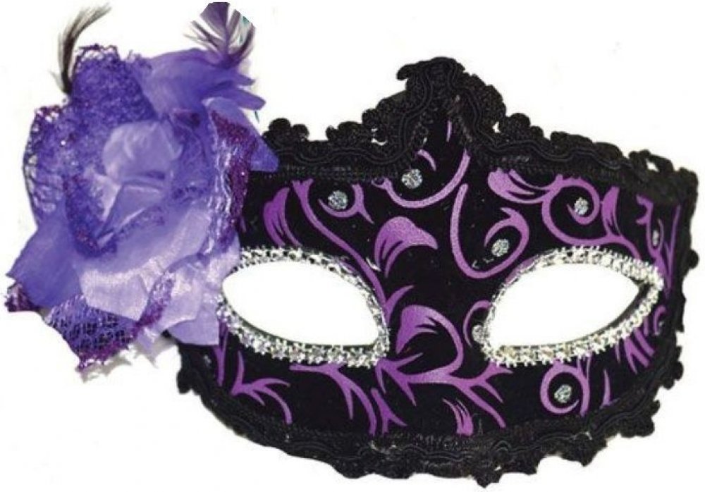 Škraboška benátská maska s růží fialová