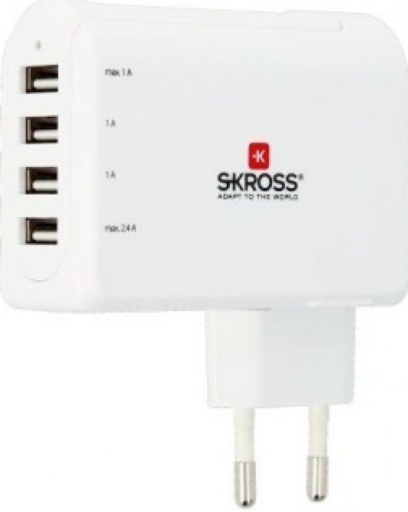 Značkový EURO USB nabíjecí adaptér SKROSS DC26 4x USB výstup typ A 5V/4800mA.