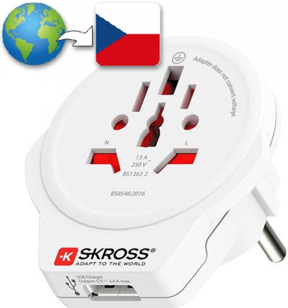 SKROSS cestovní adaptér SKROSS Europe USB pro cizince v ČR, vč. 1x USB 2400mA