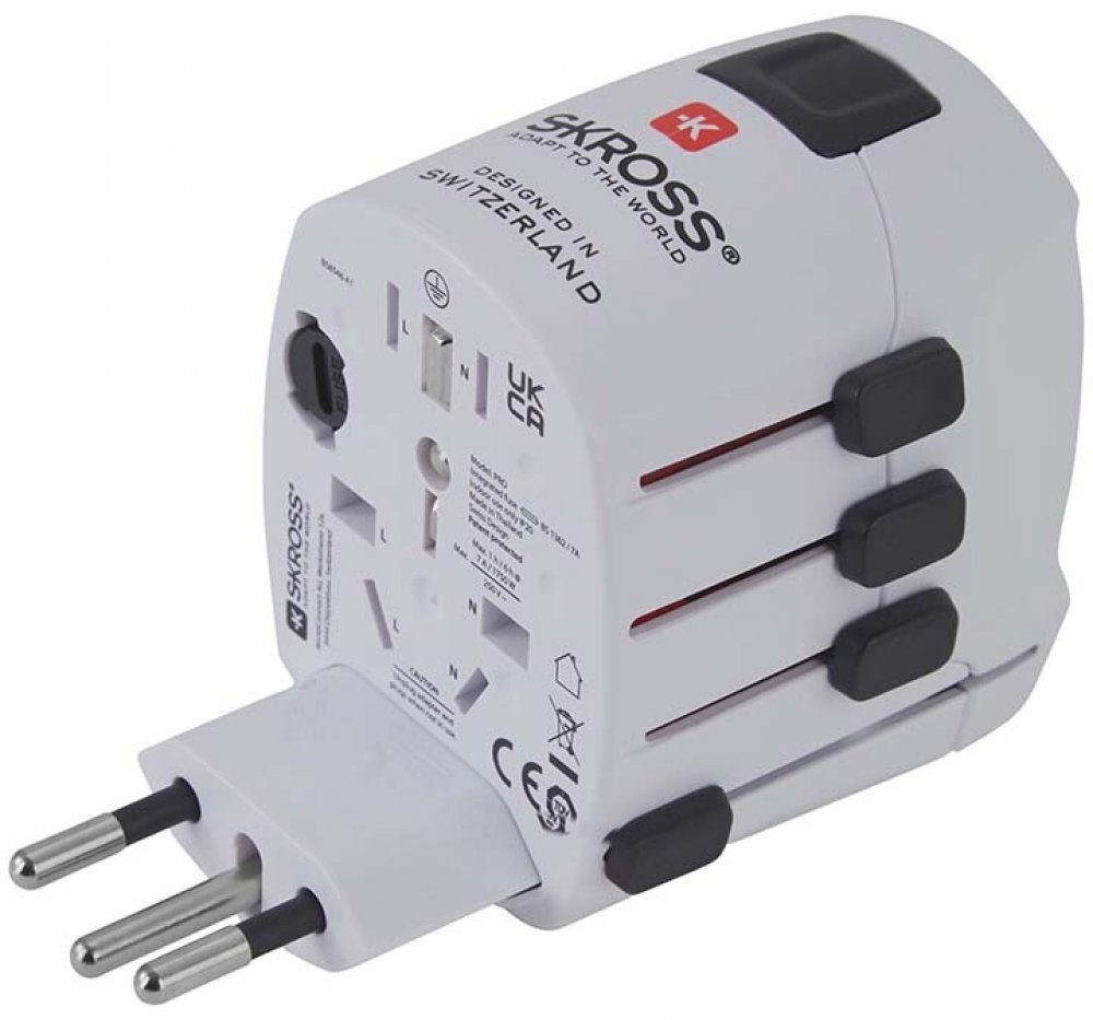 Cestovní adaptér SKROSS PRO (7A) zajišťuje jednoduché a bezpečné připojení ve více než 200 zemích světa.
